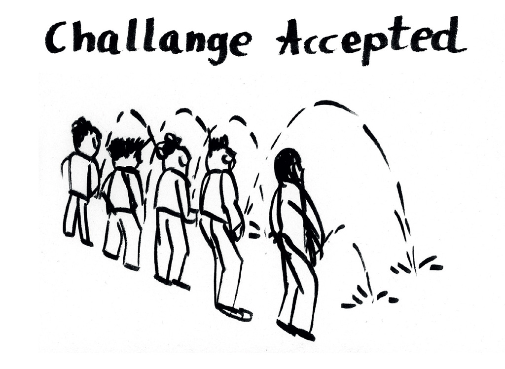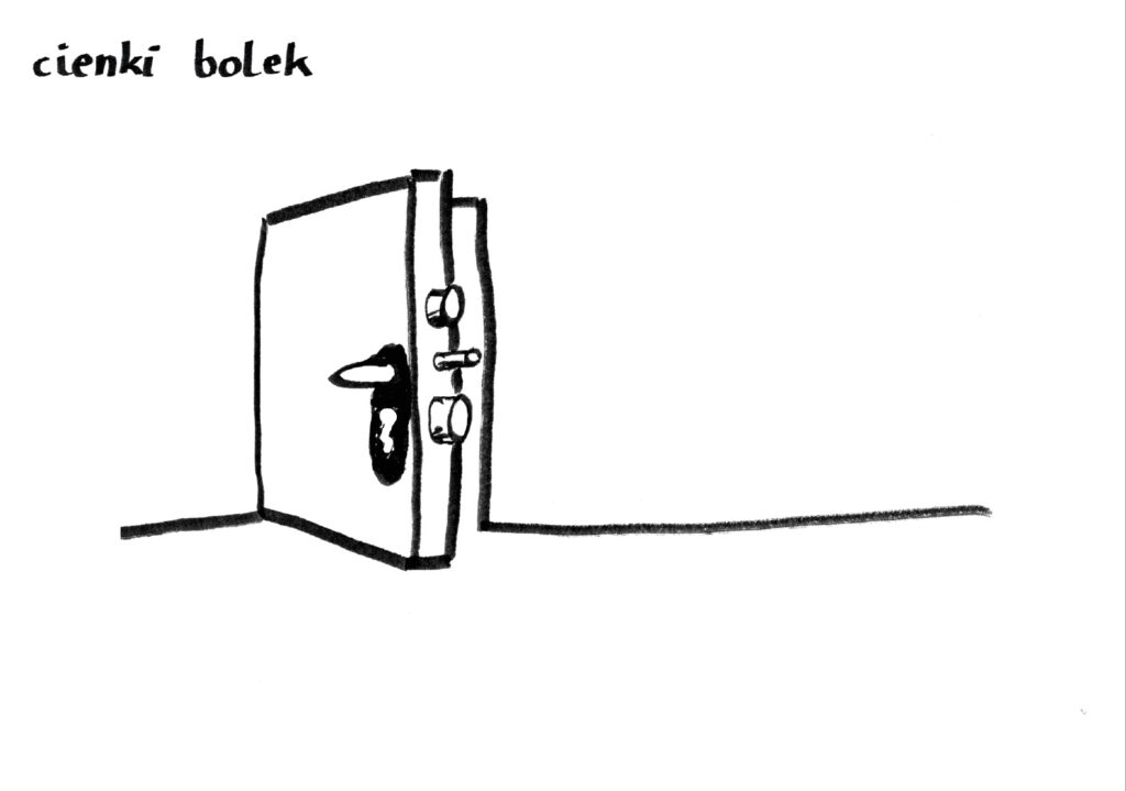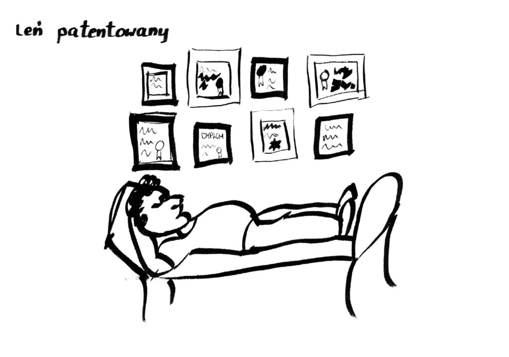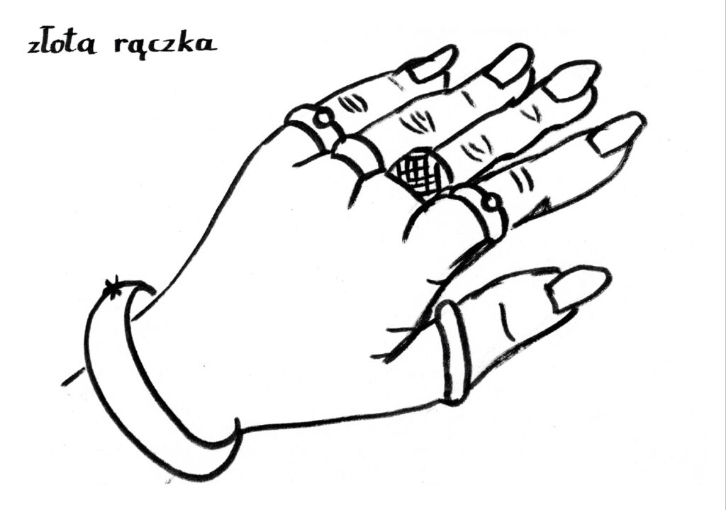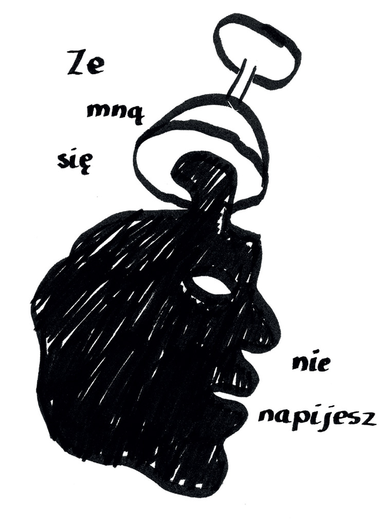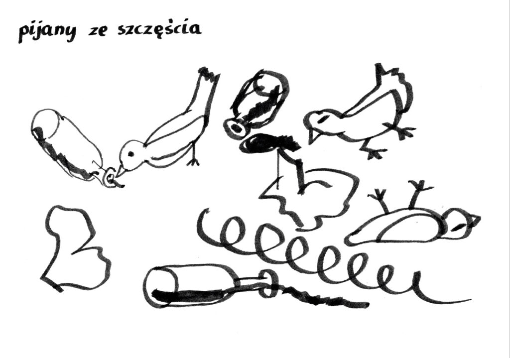 Nie miałam problemu z tym zdaniem ponieważ pomysły same przychodziły mi do głowy. Żeby nadążyć je rysować musiałam wybrać odpowiednie narzędzie – były to czarne pisaki o różnych końcówkach.